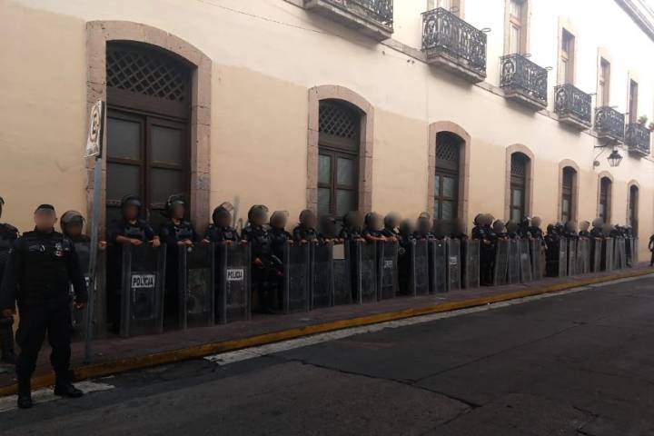 Elementos de la Unidad de Restablecimiento del Orden Público (UROP) se encuentran desplegados en las inmediaciones de Casa de Gobierno, el Congreso del Estado y la Sali... Ver más...
