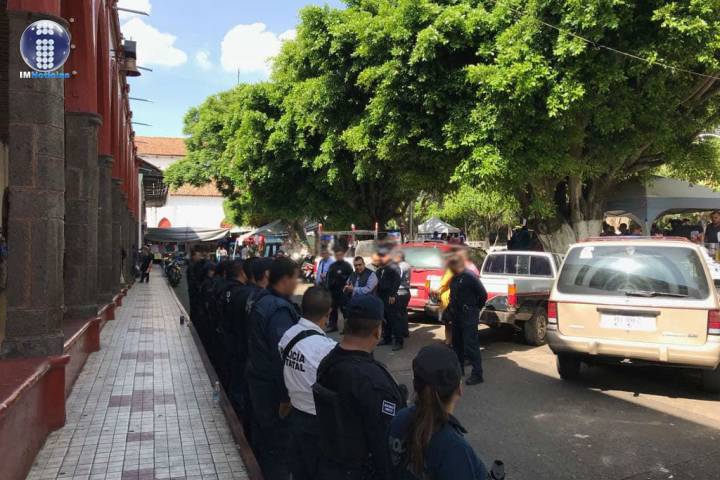 La presencia de los elementos de la Policía Michoacán es con la finalidad de garantizar la paz y tranquilidad de la población.