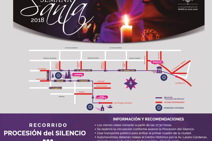 NOTICIAS 27/03/2018Policía de Morelia anuncia cierres viales por Procesión del Silencio Con el firme objetivo de resguardar la integridad física de los miles de asistentes que presenciarán la Procesión del Silencio este viernes y auxiliar en las labores de tránsito, la Policía de Morelia implementará un operativo de seguridad y vialidad en el Centro Histórico, por lo que llama a la ciudadanía a tomar sus precauciones.