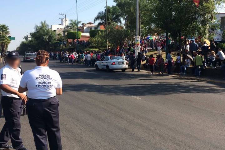 Los manifestantes se concentraron en el Centro Histórico de la capital michoacana, frente a la Catedral; elementos de la Unidad de Restablecimiento del Orden Público y agentes de Tránsito y Movilidad permanecen vigilantes en la zona y calles aledañas.