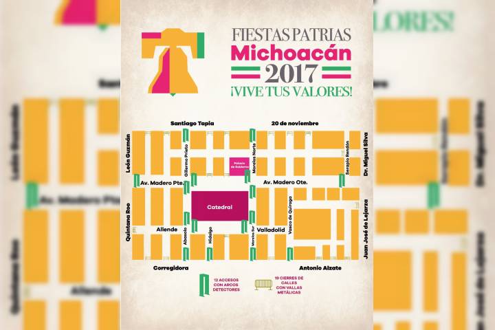 NOTICIAS 12/09/2017Detalla SSP dispositivo vial y de acceso por festejos patrios en Morelia Con el objetivo de garantizar la seguridad y el orden público durante las fiestas patrias, la SecretarÃa de Seguridad Pública (SSP) detalla el dispositivo vial y de acceso que implementará del 14 al 16 de septiembre con la instalación de vallas metálicas y arcos detectores en el primer cuadro de la capital michoacana.