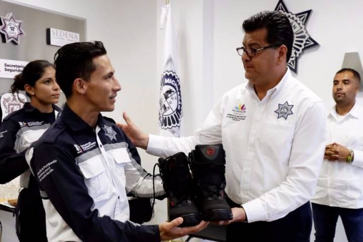 En presencia de la coordinadora de esta unidad, Verónica Maltrana Cortés, el titular de la SSP entregó pantalones para montar, camisolas, playeras, botas tácticas, botas federicas con acicaques y cascos, qu... Ver más...