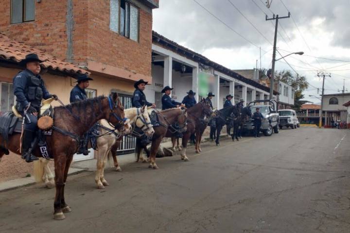 En caballos, los elementos adscritos a esta unidad realizan acciones de vigilancia y proximidad social en zonas donde se dificulta el ingreso de vehículos terrestres.