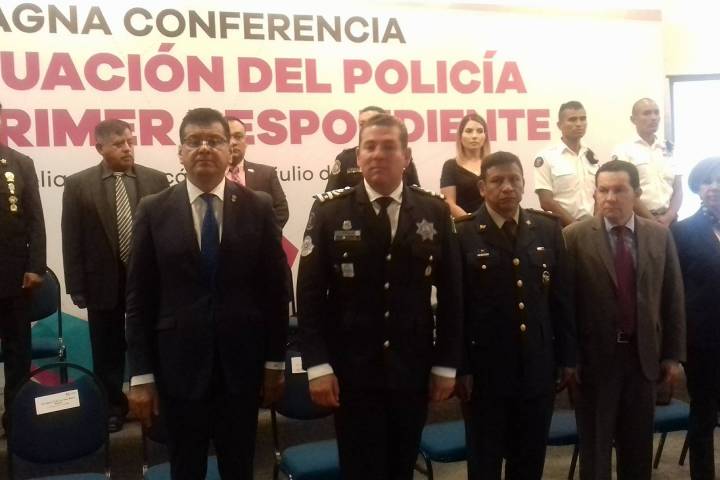 El director general del IEESSPP, Antonio Bernal Bustamante, acompañado del director de Desarrollo Policial de la SSP, Xavier Cahe... Ver más...
