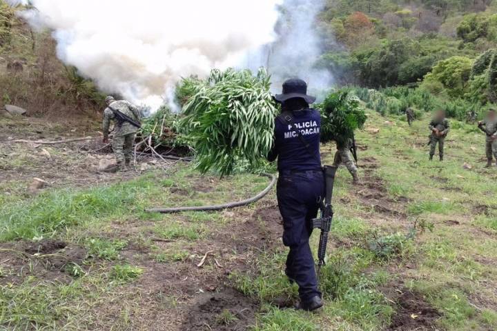 Durante uno los patrullajes permanentes que efectúan los agentes policiales y castrenses, detectaron un sembradío de mil 851 metros sobre una brecha que conduce a localidad de Inguarán.