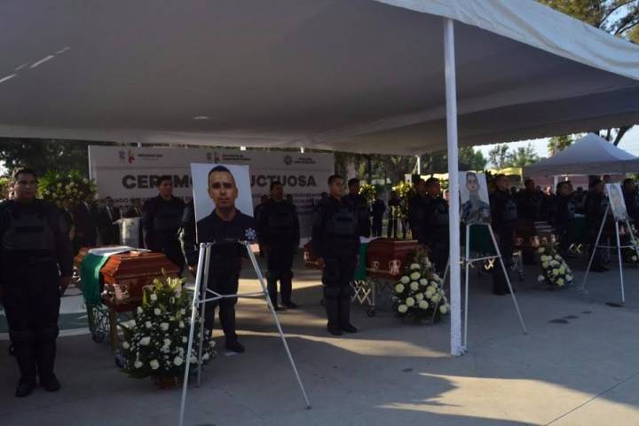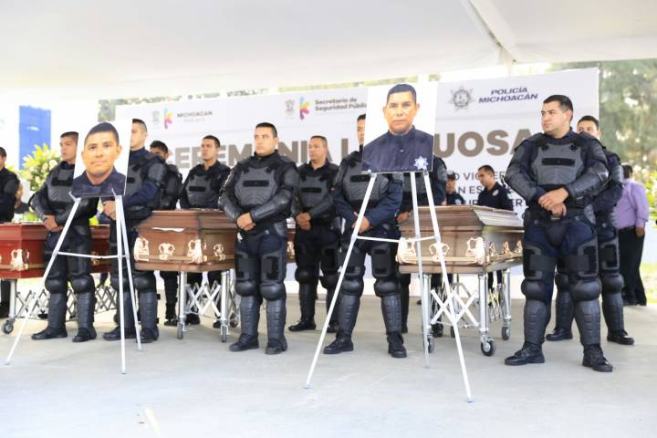 El gobernador Silvano Aureoles Conejo y el titular de la Secretaría de Seguridad Pública (SSP), Bernardo Corona Martínez, presidieron el homenaje póstumo a los ocho policías fallecidos en el accidente de tránsito ocurrido en Panindícuaro, e hicieron el compromiso de mejorar las condiciones laborales de los uniformados.