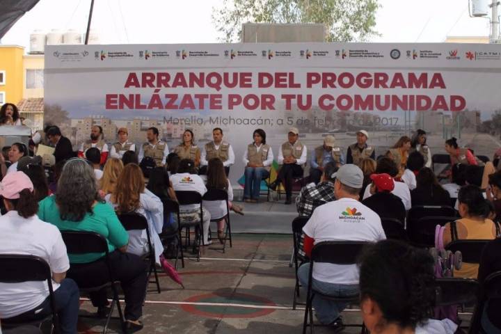 NOTICIAS 05/02/2017Arranca SSP programa "Enlázate por tu Comunidad" Con la participación de siete dependencias del Gobierno del Estado, este domingo arrancó el programa "Enlázate por tu Comunidad" que busca acercar diversos servicios y acciones oficiales a los habitantes de la capital michoacana, directamente hasta sus colonias.