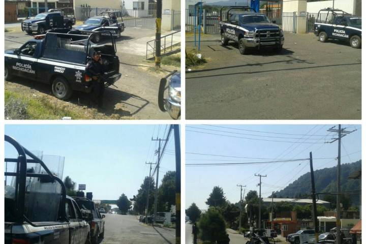 El despliegue operativo que inició a temprana hora abarca municipios de Morelia, Uruapan e Hidalgo, donde los elementos policiales resguardan las inmediaciones de los lugares donde los docentes realizan el examen.
