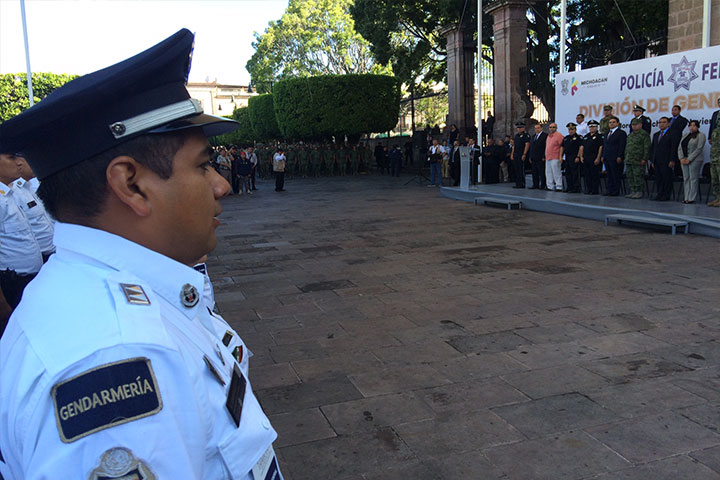 En el marco de la presentación de la Gendarmería para la capital michoacana, se presentaron los 300 elementos de esta fuerza de seguridad para hacerle frente a los delitos de fuero común y de inseguridad que se han presentado en los últimos años.