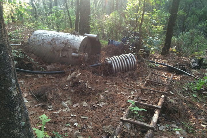La narcococina fue encontrada y eliminada en una reciente movilización de los elementos castrenses, estaba ubicada en las inmediaciones de esta población de Aguililla.