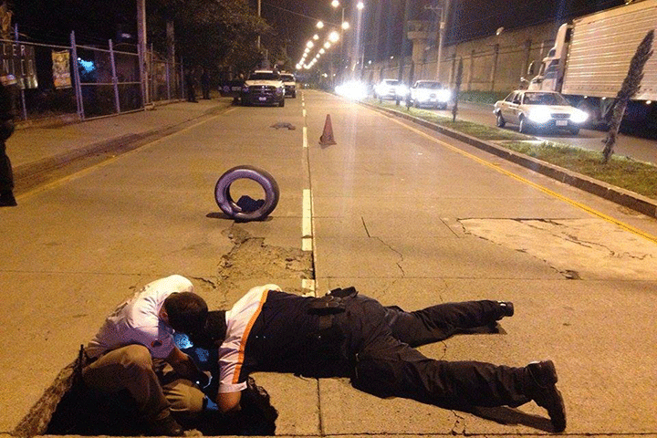 El ensayo fue alrededor de las 12:20 horas, instante en que se dio el reporte de que habÃa unos ciudadanos que habÃan sido embestidos por un vehÃculo en el distribuidor vial que está en la salida a Charo, en esta capital.