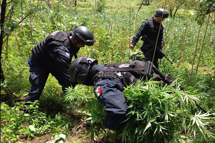A través de un comunicado, la PolicÃa Federal dio a conocer que localizó cuatro terrenos sembrados con marihuana y amapola en una extensión total de mil 175 metros cuadrados, esto en dos operativos, uno en Michoacán y otro en Guerrero.