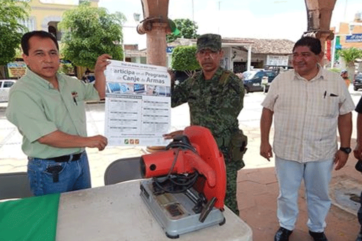 NOTICIAS 03/10/2014Canje de armas en HuetamoOficialmente inició el canje de armas en este municipio de Huetamo, y por ello el Ejército Mexicano convocó a la ciudadanía para que en caso de poseerlas asista a cambiar desde pistolas de uso civil hasta fusiles de grueso calibre, todo ello con la promesa de no realizar ninguna investigación en su contra y con el beneficio de que la gente obtenga cierta cantidad de dinero dependiendo del arma que lleve a canjear.