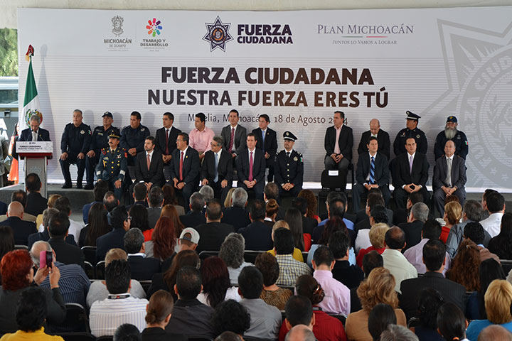 NOTICIAS 18/08/2014En marcha la Fuerza Ciudada, en Morelia la integran 500 elementos500 elementos del Mando Unificado integrarán la Fuerza Ciudadana en Morelia, así lo dio a conocer el titular de la Secretaría de Seguridad Pública, Carlos Hugo Castellanos Becerra, al participar en la puesta en marcha de dicha corporación.