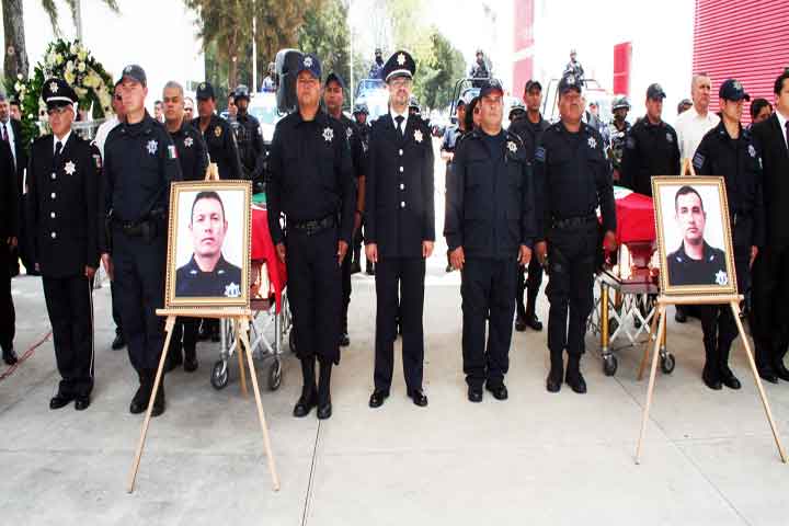 Con un emotivo homenaje, autoridades de la Secretaría de Seguridad Pública dieron el último adiós a los elementos operativos Juan Salvador Montelongo Tenorio y Francisco Javier Martínez Rojas, quienes fueran parte del agrupamiento de la Policía Estatal Preventiva y que perecieron el pasado viernes en cumplimiento de su deber en el municipio de Venustiano Carranza.