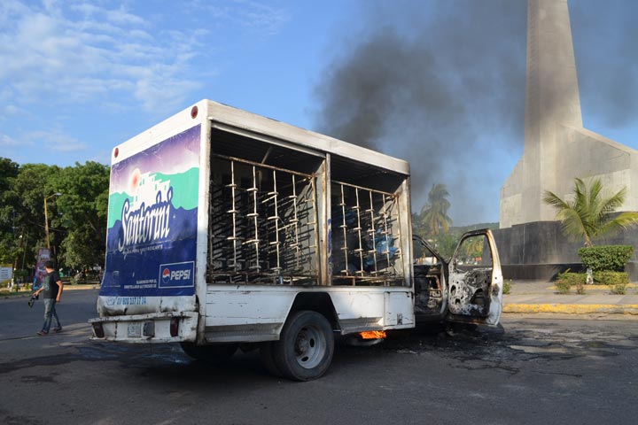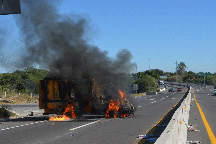 Los bloqueos se registraron en ambos lados de la vía Cuatro Caminos-Apatzingán, muy cerca de la desviación que lleva a Parácuaro.