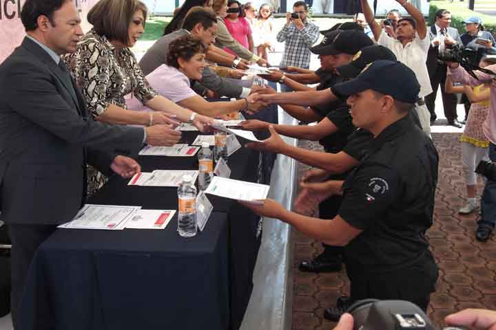Se realizó la clausura e inauguración del curso "Nuevo Sistema de Justicia Penal" en donde 104 elementos de la Policía Estatal y Protección Civil estatal completaron el curso y 90 de ellos lo iniciaron.