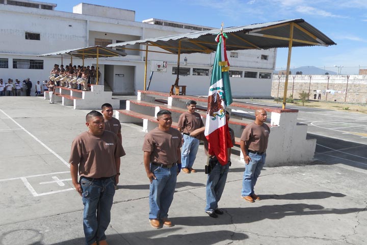 Con el objetivo de fomentar una cultura cívica y enaltecer los valores de respeto, solidaridad, honestidad y tolerancia, internos del Centro de Reinserción Social "Gral. Francisco J. Múgica" llevaron a cabo primer acto cívico con la finalidad de rendir culto a la insignia nacional como parte del programa de cultura cívica.