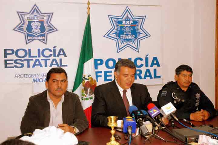 NOTICIAS 20/04/2012Finalmente después de asesinar a un policía fue detenidoUn policía de la Secretaría de Seguridad Pública de Michoacán cayó abatido a tiros y otro resultó lesionado, cuando acudieron a un llamado de apoyo en la Calzada Madero y 20 de Noviembre en la que les reportaban a un grupo de sujetos asaltando a transeúntes y fueron recibidos a tiros, suscitándose un enfrentamiento y persecución por diversos puntos de la capital. Poco después la SSP presentaba al asesino a quien le confiscaron un revól... Ver más...