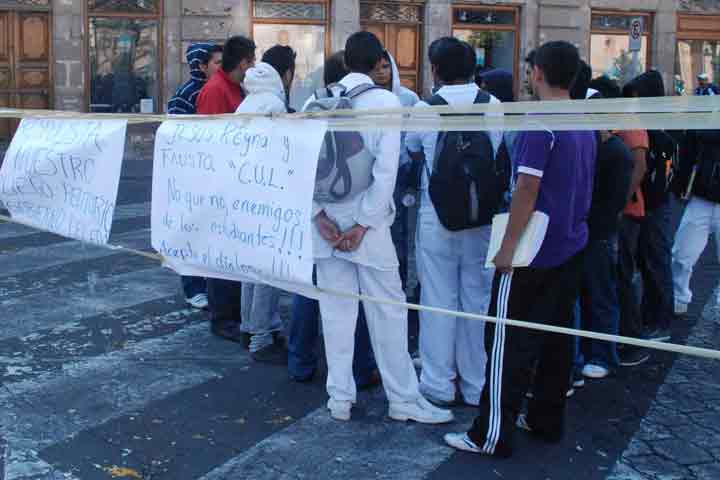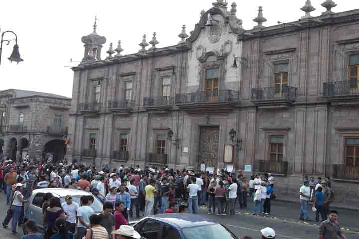 NOTICIAS 26/04/2012Cascarita de futbol, mientras los morelianos los repudianNuevamente habitantes de las casas del estudiante 2 de Octubre y Nicolaita han vuelto a desquiciar el Centro Histórico, de Morelia, donde con colchones, bancas y autos secuestrados bloquearon diversas avenidas como "medio de presión para que el gobierno cumpla sus demandas".