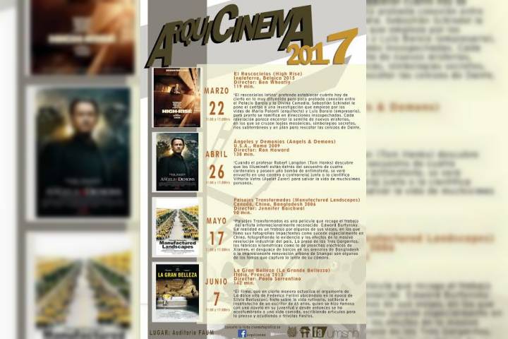 Como un innovador recurso didáctico para formación integral de sus alumnos, la Facultad de Arquitectura de la Universidad Michoacana de San Nicolás de Hidalgo anuncia una cartelera cinematográfica, con películas relacionadas con el aprendizaje de la arquitectura denominada "Arquicinema 2017".