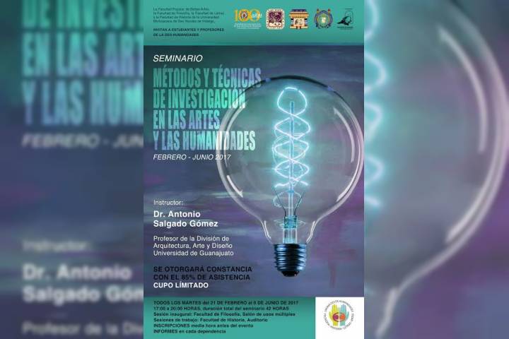 Este seminario titulado "Métodos y técnicas de investigación en las artes y las humanidades", será impartido por el investigador Antonio Salgado Gómez, profesor de la Universidad de Guanajuato y se impartirá a part... Ver más...