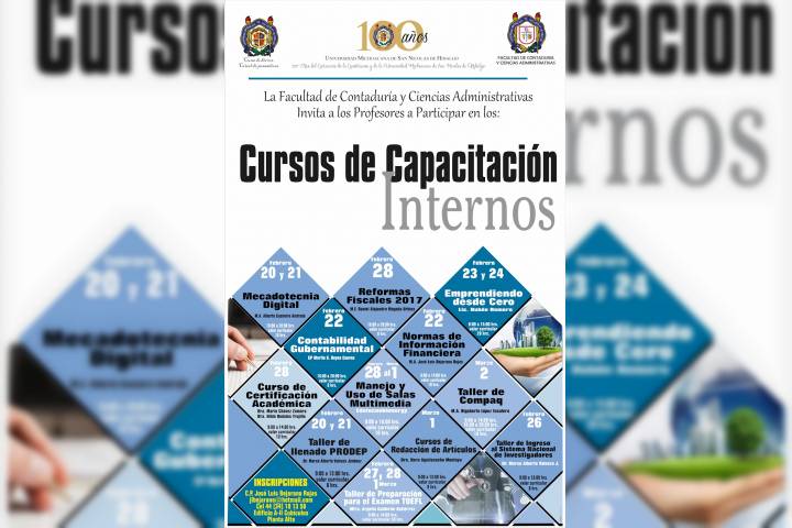 NOTICIAS 20/02/2017Capacitación permanente a profesores de la FCCA para elevar calidad académicaLa Facultad de Contaduría y Ciencias Administrativas de la Universidad Michoacana de San Nicolás de Hidalgo invita a sus profesores a participar en los cursos internos de capacitación, que tienen por objeto actualizar conocimientos y brindar las herramientas didácticas necesarias para elevar la calidad académica de los procesos de enseñanza y aprendizaje de estudiantes.