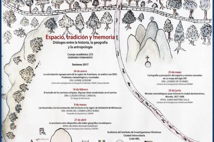 El Instituto de Investigaciones Históricas (IIH) de la Universidad Michoacana de San Nicolás de Hidalgo invita a la comunidad universitaria y público en general que se interese en el tema, a las sesiones que forman parte del Seminario Permanente "Espacio, Tradición y Memoria. Diálogos entre la Historia, la Geografía y la Antropología"