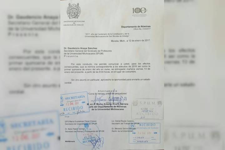 Este viernes 13 de enero quedarán cubiertos los pagos pendientes del 2016 para los trabajadores académicos y administrativos de la Universidad Michoacana de San Nicolás de Hidalgo, asà como la primera quincena de enero de 2017, luego de fructificar las gestiones realizadas por el rector Medardo Serna González ante las instancias estatales y federales.