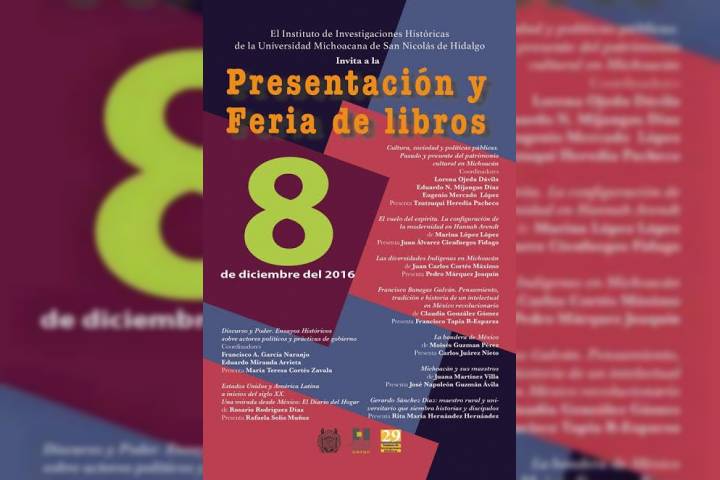 Un total de nueve obras relacionadas con las investigaciones que en materia de Historia han realizado los diferentes cuerpos académicos del Instituto de Investigaciones Históricas de la Universidad Michoacana de San Nicolás de Hidalgo (IIH), se presentarán a inicios de diciembre para conmemorar el 29 aniversario de esta dependencia nicolaita.