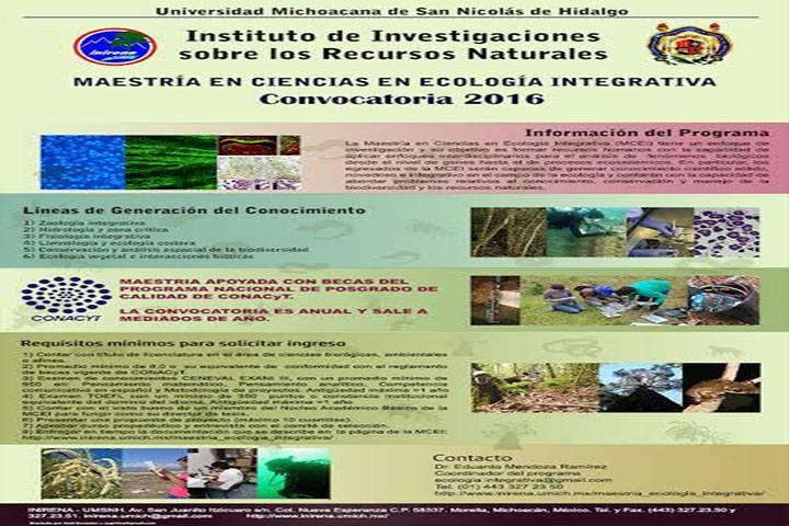 Con un enfoque de investigación orientado a formar recursos humanos con la capacidad de aplicar metodologías interdisciplinarias para el análisis de fenómenos biológicos desde el nivel de genes hasta el de ecosistemas y en esa medida contribuir a la protección y conservación de los ecosistemas, el Instituto de Investigaciones sobre los Recursos Naturales de la UMSNH mantiene la recepción de solicitudes y documentos para quienes deseen c... Ver más...
