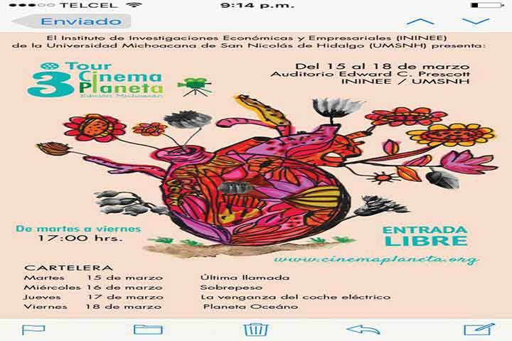 Con el propósito de generar una mayor conciencia respecto a la conservación, cuidado y protección del medio ambiente, el Instituto de Investigaciones Económicas y Empresariales (ININEE) de la Universidad Michoacana de San Nicolás de Hidalgo (UMSNH) puso en marcha la tercera edición del Tour Cinema Planeta, edición Michoacán, bajo el lema "La Tierra necesita que le plantes tu corazón".
