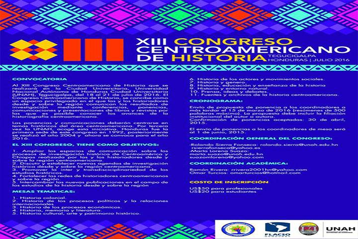 El Instituto de Investigaciones Históricas de la Universidad Michoacana de San Nicolás de Hidalgo (UMSNH) invita a sus alumnos e investigadores a participar en el XIII Congreso Centroamericano de Historia, que se llevará a cabo por tercera ocasión en la Universidad Nacional Autónoma de Honduras (UNAH), ubicada en la ciudad capital Tegucigalpa.