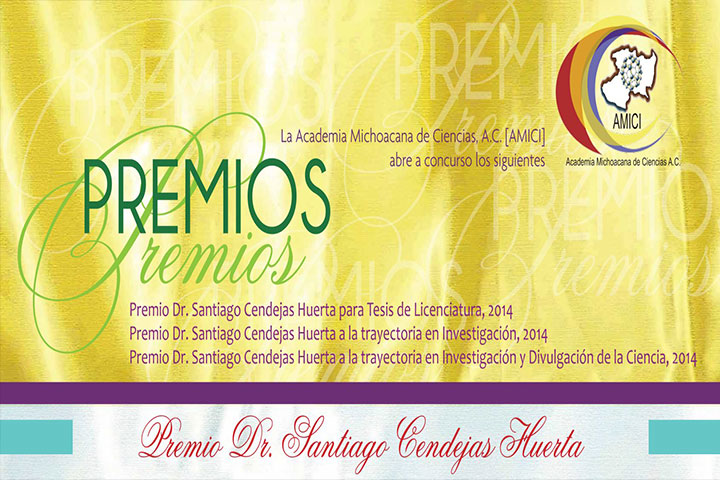 La Academia Michoacana de Ciencias A.C. (AMICI), abrió la convocatoria 2015 del "Premio Dr. Santiago Cendejas Huerta a la trayectoria en Investigación y Divulgación de la Ciencia", con el objeto de incentivar la actividad cientÃfica en el estado en las categorÃas de actividad cientÃfica, divulgación de la ciencia y tesis de licenciatura.