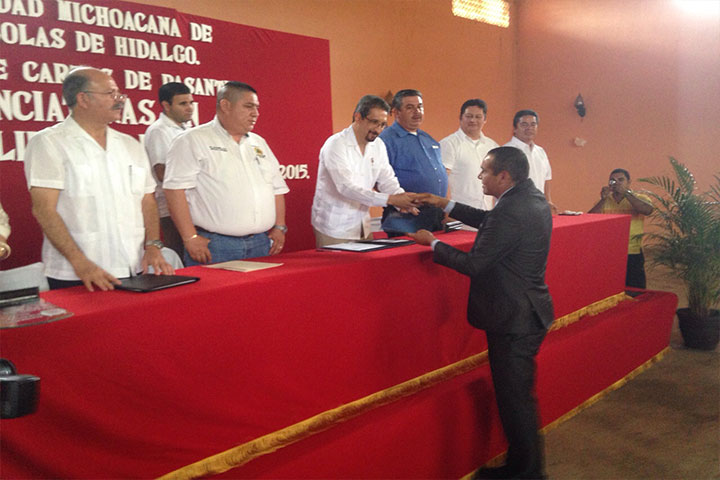 A continuar sus estudios en la Universidad Michoacana de San Nicolás de Hidalgo (UMSNH), instó el coordinador general del Bachillerato Nicolaita, MartÃn Paz Hurtado, a los 535 egresados del Colegio Primitivo y Nacional de San Nicolás de Hidalgo, integrantes de la Generación 2012-2015, durante el evento en el que recibieron su certificado de estudios.