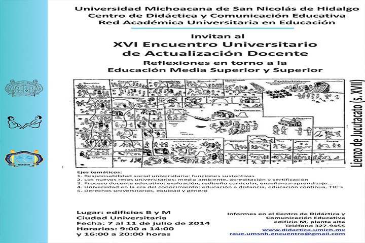 El Encuentro organizado por la Universidad Michoacana de San Nicolás de Hidalgo (UMSNH), a través de la Secretaría Académica, tendrá lugar del 6 al 10 de julio del presente, con el objetivo de mantener una actualiza... Ver más...