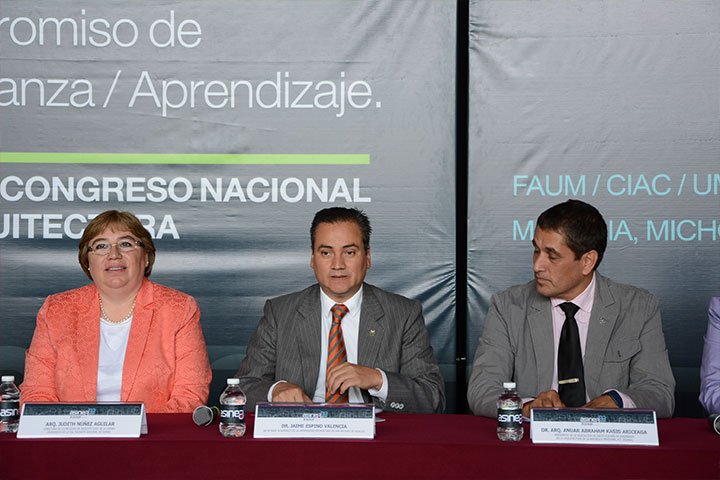 Luego de tres días de reflexión y diálogo dentro del Primer Congreso Nacional de Arquitectos y la 93° Reunión Nacional de la Asociación de Instituciones de Enseñanza de la Arquitectura en la República Mexicana (ASINEA), los nicolaitas nos llevamos la tarea de mejorar de acuerdo a las conclusiones, el ejercicio de la enseñanza de la Arquitectura, afirmó el secretario Académico de la Casa de Hidalgo, Jaime Espino Valencia.