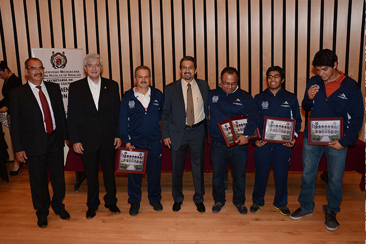 Durante una ceremonia de reconocimiento a los atletas nicolaitas que resultaron triunfadores en la Universiada Nacional 2015, acompaña... Ver más...
