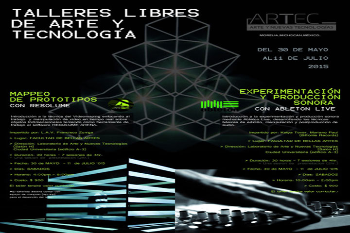 La Cátedra de Arte y Nuevas Tecnologías, de la licenciatura en Artes Visuales, de la Facultad Popular de Bellas Artes (FPBA), como parte de sus actividades de formación complementaria y continua, ofrecerá del 30 de mayo al 11 de julio dos talleres libres con duración de 30 horas y valor curricular, al cual podrán asistir no solo alumnos de la facultad, sino también público en general.