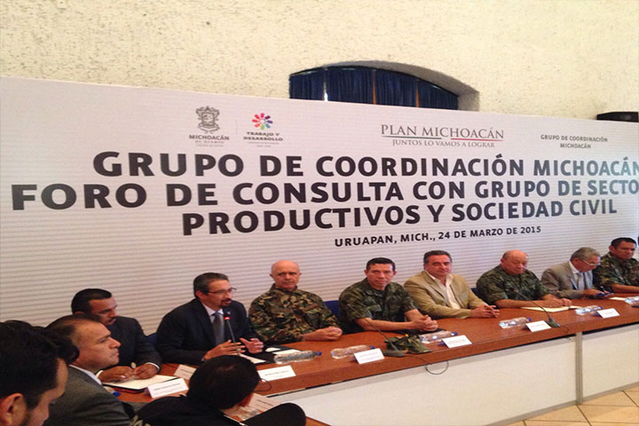 NOTICIAS 24/03/2015Inicia Foro Ciudadano en Uruapan La Facultad de Agrobiología "Presidente Juárez" de la Universidad Michoacana de San Nicolás de Hidalgo, en Uruapan, es sede del Foro de Consulta con Grupo de Sectores Productivos y Sociedad Civil, encabezada por el gobernador del Estado, Salvador Jara Guerrero, y por el general Pedro Felipe Gurrola Ramírez, coordinador de la Estrategia de Seguridad del Plan Michoacán.