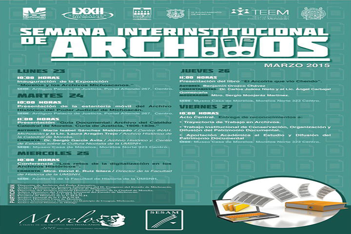 Con el objetivo de despertar el interés en la ciudadanÃa y los estudiosos de diversas ciencias como Historia, PolÃtica y SociologÃa, en el entendido de que los archivos no son "papelerÃa muerta" sino fuente de investigación y conocimiento, el director de la Facultad de Historia, David Eduardo Ruiz Silera, informó que se realizará en Michoacán la Semana Interinstitucional de Archivos.