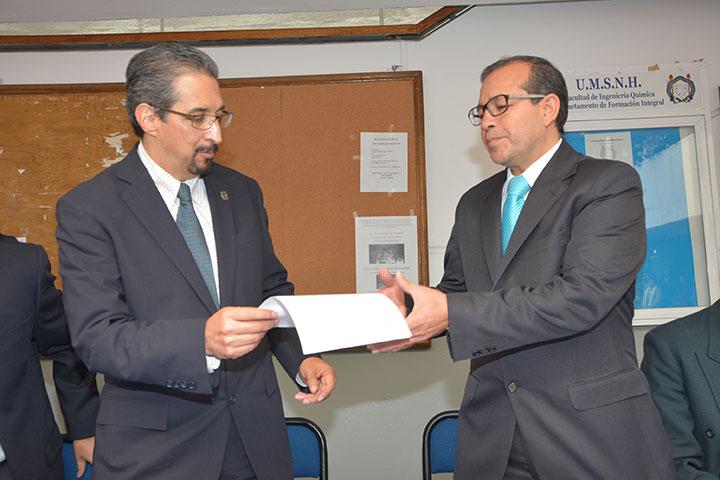 El Rector de la Universidad Michoacana de San Nicolás de Hidalgo, Dr. Medardo Serna González realizó en un acto protocolario el relevo de Director provisional de la Facultad de Ingeniería Química, que estará a cargo a partir de este día del Mtro. Juan Ramón Romero Bucio.