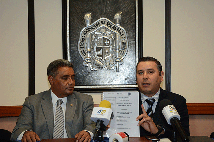 NOTICIAS 25/11/2014Firma convenio UMSNH con PRODECOM?El día de hoy por la tarde se llevo a cabo la Formalización del Convenio de colaboración de la Universidad Michoacana de San Nicolás de Hidalgo (UMSNH) con la Procuraduría de la Defensa del Contribuyente (PRODECON), para tal efecto se reunieron en la sala de juntas de la Secretaria General de Rectoría, el Dr. José Gerardo Tinoco Ruiz, Rector de nuestra máxima casa de estudios; el Dr. Zoé Tamayo Infante Jiménez, Delegado de la Procuradur... Ver más...