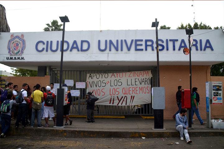 NOTICIAS 05/11/2014Se suma la UMSNH al paro nacional de 72 horasLas escuelas y facultades de la Universidad Michoacana (UMSNH) volvió amanecer con las puertas cerradas, esto como parte del paro de 72 horas al que se sumaron los alumnos nicolaitas para exigir la aparición con vida de los 43 normalistas de Ayotzinapa desparecidos en Iguala, Guerrero.