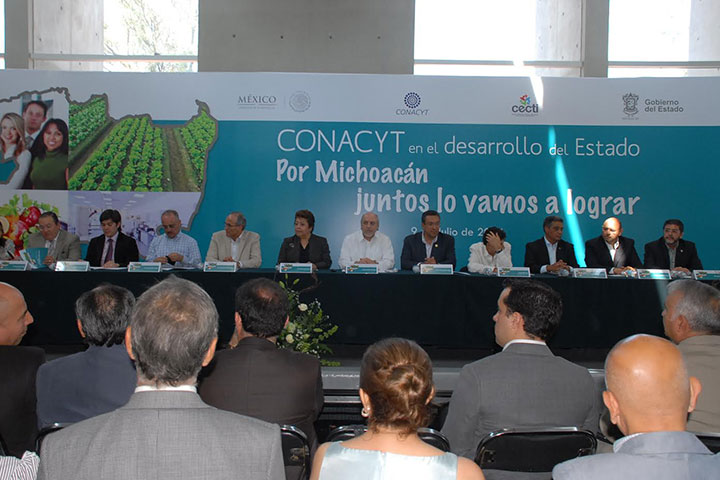 NOTICIAS 09/07/2014Apoya CONACyT 14 proyectos de investigación en empresas michoacanasDentro del Programa Especial de Ciencia, Tecnología e Innovación y Acciones para Apoyar al Sector Científico, presentado este día por el Director General del Consejo Nacional de Ciencia y Tecnología (CONACyT), Enrique Cabrero Mendoza, se asignaron recursos a Michoacán del orden de los 58.9 millones de pesos para 14 proyectos de investigación vinculados con empresas michoacanas, 4 de ellos vinculados a investigadores nicolaitas.