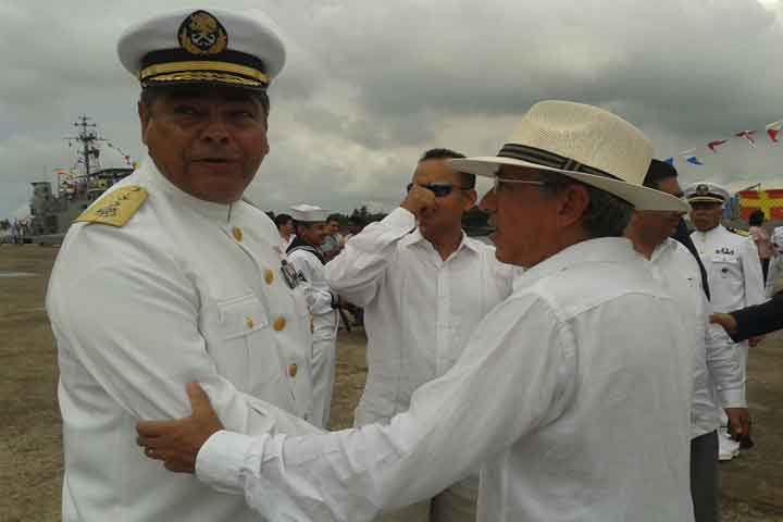 El rector de la Universidad Michoacana de San Nicolás de Hidalgo (UMSNH), Salvador Jara Guerrero, acudió en compañía del Gobernador del Estado de Michoacán, Fausto Vallejo Figueroa, a la celebración del Día de la Marina en el puerto de Lázaro Cárdenas, Michoacán.