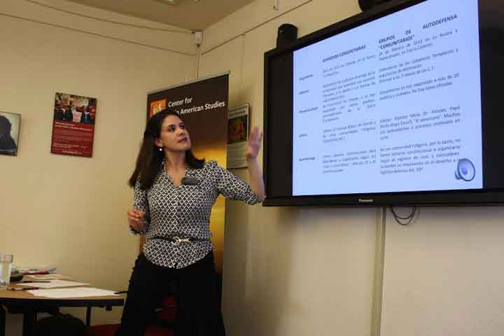 NOTICIAS 06/04/2014Investigadora nicolaita presenta conferencia en Universidad de California La profesora e investigadora de la Universidad Michoacana de San Nicolás de Hidalgo (UMSNH), Lorena Ojeda Dávila, presentó la conferencia: "Comunidades en armas. El desafío mexicano del siglo XXI", en la Universidad de California en Berkeley.