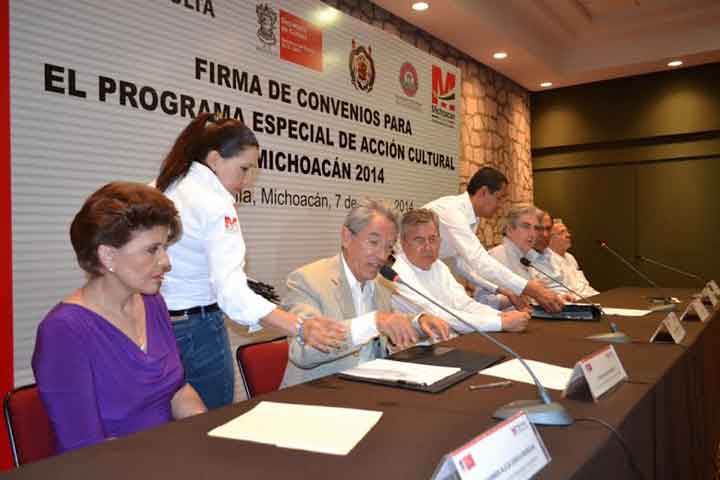 La Universidad Michoacana de San Nicolás de Hidalgo (UMSNH) tomará el control de las Caravanas Culturales dentro del Programa Especial de Acción Cultural Michoacán 2014, firmado este lunes en Casa de Gobierno, en la ciudad de Morelia, entre Salvador Jara Guerrero por la Universidad; Carmen Alicia Dávila, por el Conservatorio de las Rosas; Marco Antonio Aguilar, por la Secretaría de Cultura del Estado; y Rafael Tovar y de Teresa, por el Co... Ver más...