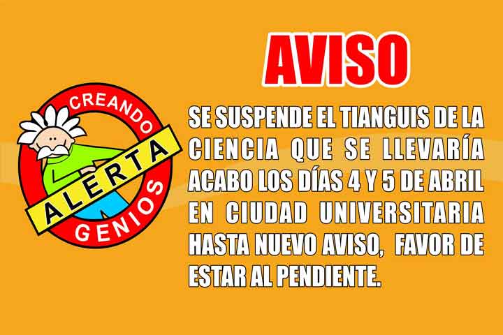 NOTICIAS 02/04/2014Por la huelga, se cancela el Tianguis de la Ciencia Luis Manuel Villaseñor Cendejas, Coordinador de la Investigación Científica de la Universidad Michoacana de San Nicolás de Hidalgo (UMSNH) y coordinador de la organización del Tianguis de la Ciencia, lamenta que debido a la huelga del Sindicato de Profesores (SPUM), se deba cancelar el evento programado para realizarse el próximo viernes 4 y sábado 5 de abril, con una asistencia estimada de 20 mil personas.