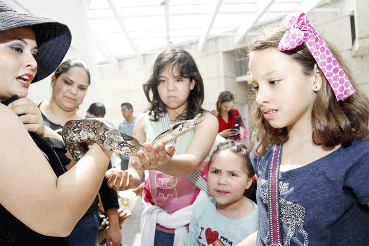 NOTICIAS 22/02/2014Boa constrictor cautiva a niños y sus papásCon una entusiasta audiencia infantil, este día continuó el Primer Ciclo de Conferencias de Ciencia para Niñ@s y sus Papás, en la Universidad Michoacana de San Nicolás de Hidalgo (UMSNH), con la participación de la investigadora Ireri Suazo Ortuño, Directora del Instituto de Investigaciones sobre los Recursos Naturales INIRENA, con el tema "Anfibios y reptiles: ¿mito o realidad?